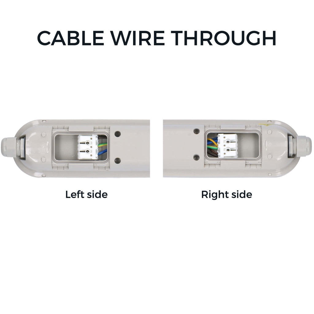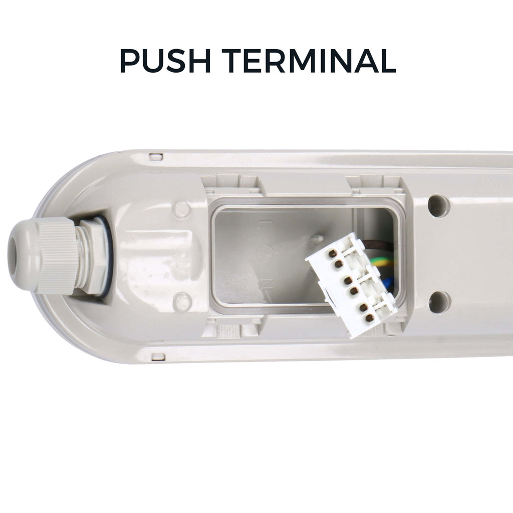 Deze high end TL armaturen van 150 cm geven een neutraal, niet-flikkerend wit licht van 4000K af. Het installeren is zeer eenvoudig dankzij de ingebouwde drukklemmen. Bij de levering ontvang je er verschillende maten rubbers bij, zodat je vrijwel iedere kabelgrootte kunt gebruiken.