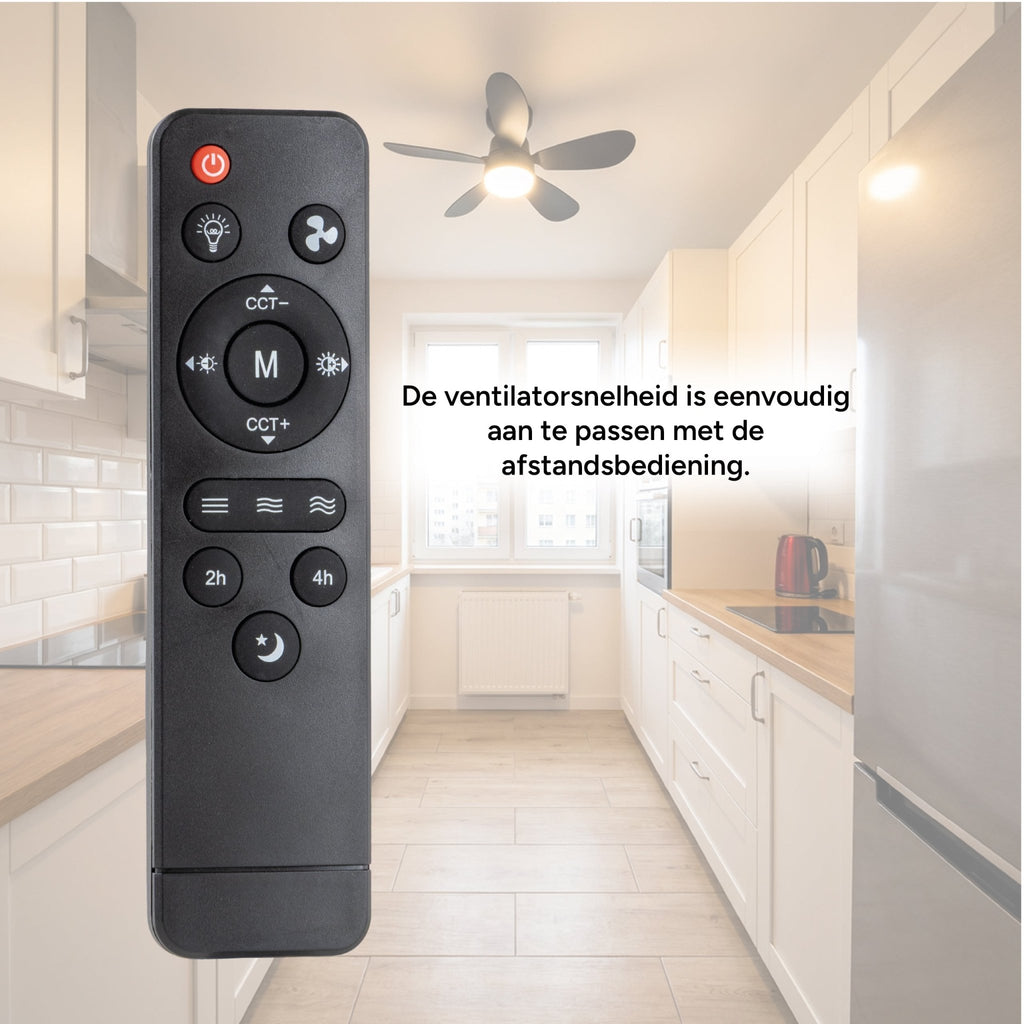 Met de afstandsbediening stel je zowel de lichtintensiteit als de ventilatorstand moeiteloos in. Zo creëer je altijd het gewenste klimaat in de ruimte, zonder op te hoeven staan.