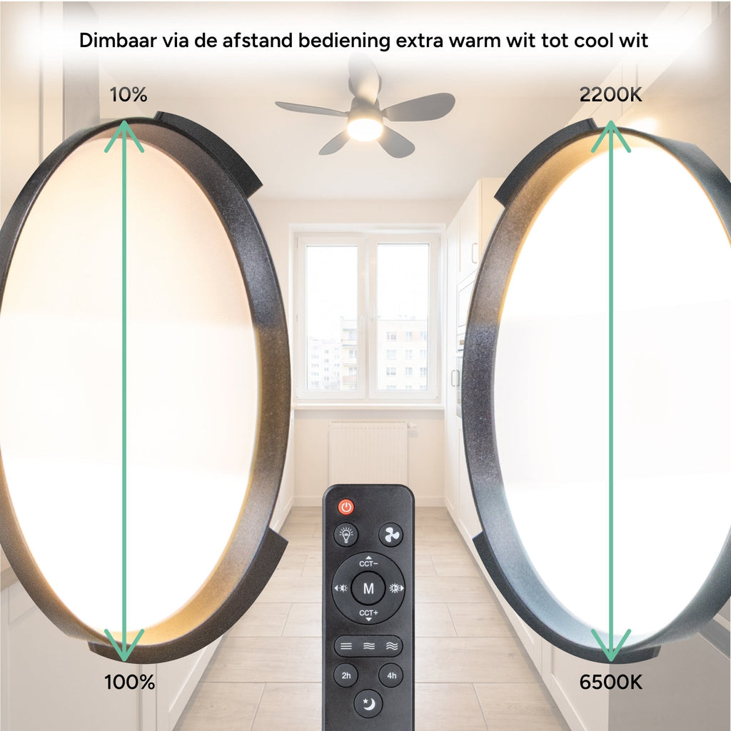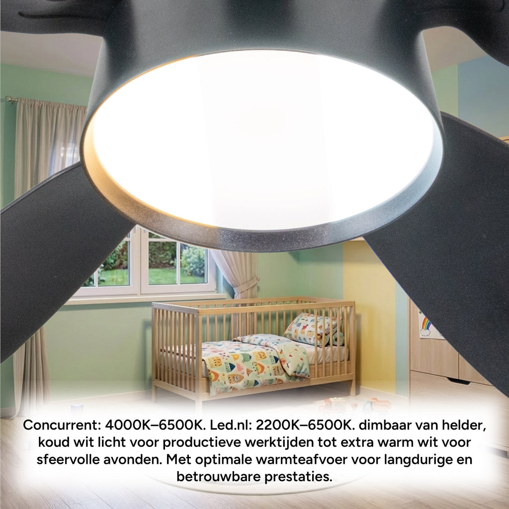 Deze stijlvolle plafondlamp met geïntegreerde ventilator combineert hoogwaardige LED-verlichting met efficiënte luchtcirculatie. Perfect voor wie comfort en functionaliteit wil samenbrengen in één strak ontwerp.