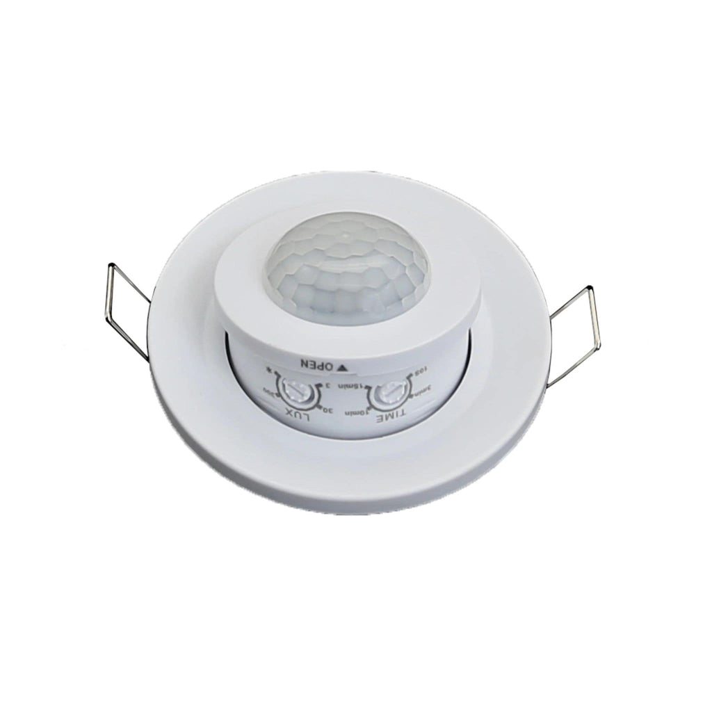 Der Bewegungssensor sorgt für eine effizientere Energienutzung. Beim Betreten des Erfassungsbereichs schaltet sich das Licht automatisch ein. Die Leuchtdauer lässt sich bequem von 10 Sekunden bis 15 Minuten einstellen. Danach schaltet sich das Licht automatisch aus. Dieser Sensor lässt sich problemlos in einer Decke installieren und ermöglicht Ihnen die 360°-Infraroterkennung. Dadurch eignet sich der Bewegungsmelder ideal für den Einsatz in Büros und anderen Räumen, in denen vorübergehend Licht benötigt wird.