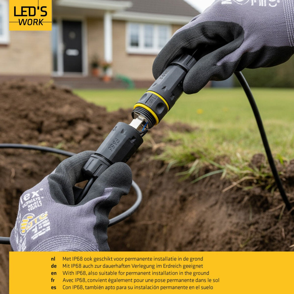 LED's Work Ethernet connector RJ45-connector I-vorm – CAT6A – Ø4,5–7,5 mm kabel – IP68