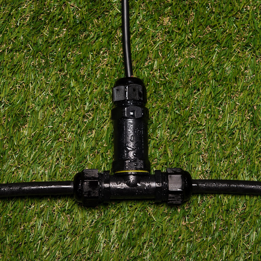 Mit diesem T-Stecker-Kabelverbinder können Sie ganz einfach 3 (Außen-)Kabel verbinden. Ordentlich und sicher!