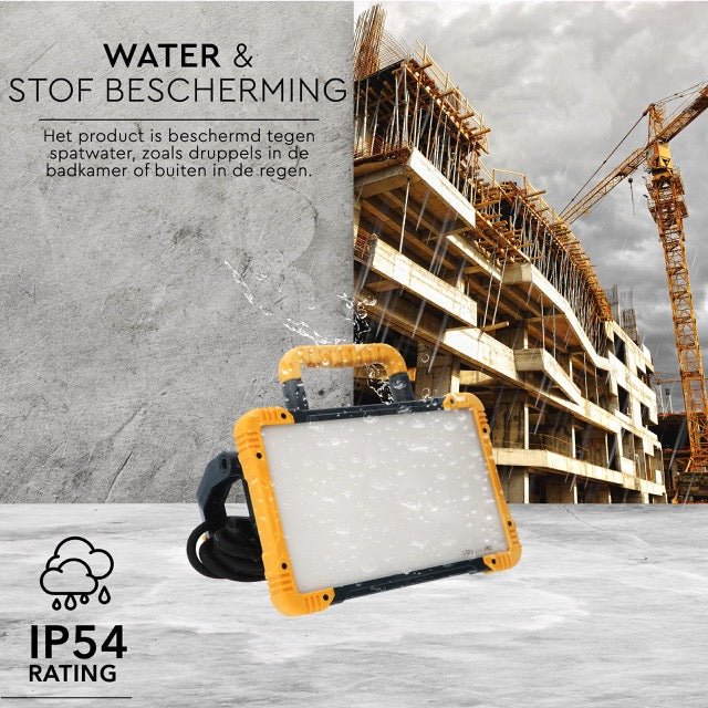 Diese 30W Pro LED-Baulampe ist nicht nur mit dem Rough Service-Gütesiegel ausgestattet, sondern verfügt auch über die Zertifizierungen IP54 und IK08. Dank des extrem stabilen Polycarbonatgehäuses verfügen Sie über eine nahezu unzerstörbare Lichtquelle, die vor Sturz- und Stoßschäden, Feuchtigkeit und Staub geschützt ist. Egal, ob Sie in staubigen Innenräumen oder draußen im Regen arbeiten, mit dieser 30-W-Pro-LED-Baulampe ist Ihnen eine zuverlässige und professionelle Beleuchtung sicher.