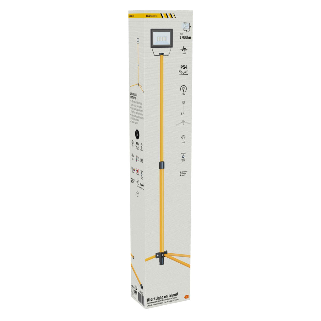 Das Stativ dieser Bauleuchte ist bis zu 120 cm höhenverstellbar, sodass Sie das Licht genau dorthin richten können, wo es benötigt wird. Das stabile Stativ sorgt für das Gleichgewicht und verhindert ein Umfallen während des Gebrauchs.